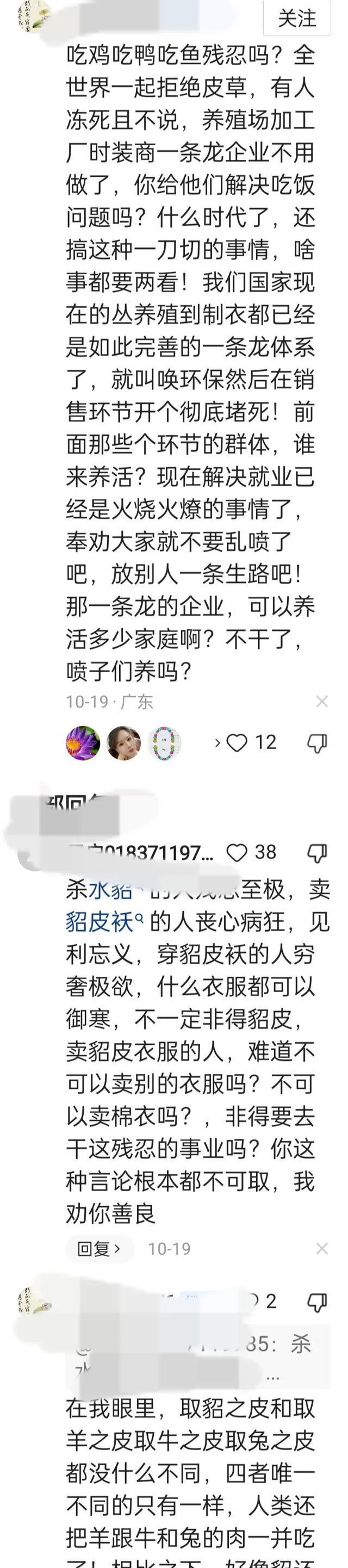 而有些人却觉得,弱肉强食是这个世界上的普遍法则,穿皮草就像吃鸡鸭鱼肉一样,并不值得小题大做。