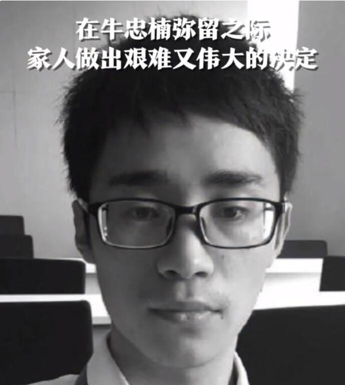 牛忠楠是聊城莘县人,几天前,24岁的他在西安上学期间突发脑出血不幸离世,淳朴善良的父母悲痛之余,无私捐献了孩子双肾、肝脏及两片眼角膜5项器官,帮助3位终末期器官衰竭患者获得新生,也为两名眼病患者送去光明。