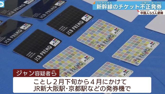 根据日本新闻报道,四名中国籍男子使用他人信用卡名义,通过JR西日本的网络预订服务非法获取大量新干线特快车票和乘车票被捕。大阪调查人员采访称,还发现一名日本籍同伙男子(55岁)被一同移交给检察官。