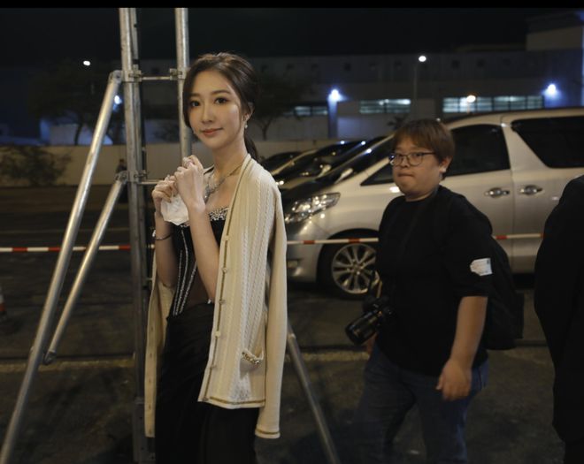 炎明熹(Gigi)贵为TVB歌唱新星,有专人为她披上外套保暖,此外也有专人帮她携带水壶、化妆用具。绝对是受到一姐级待遇。