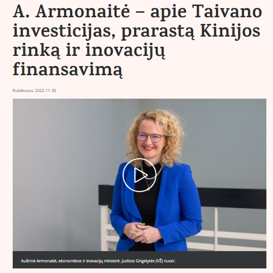 据波罗的海通讯社(BNS)11月30日报道,经济与创新部长阿尔莫奈特(Aušrinė Armonaitė)日前在接受立陶宛“商业新闻”(Verslo žinios)采访时表示,“在如今这个全球化的世界中,我们所有的价值链交织在一起,想要完全排除中国是不可能的”。