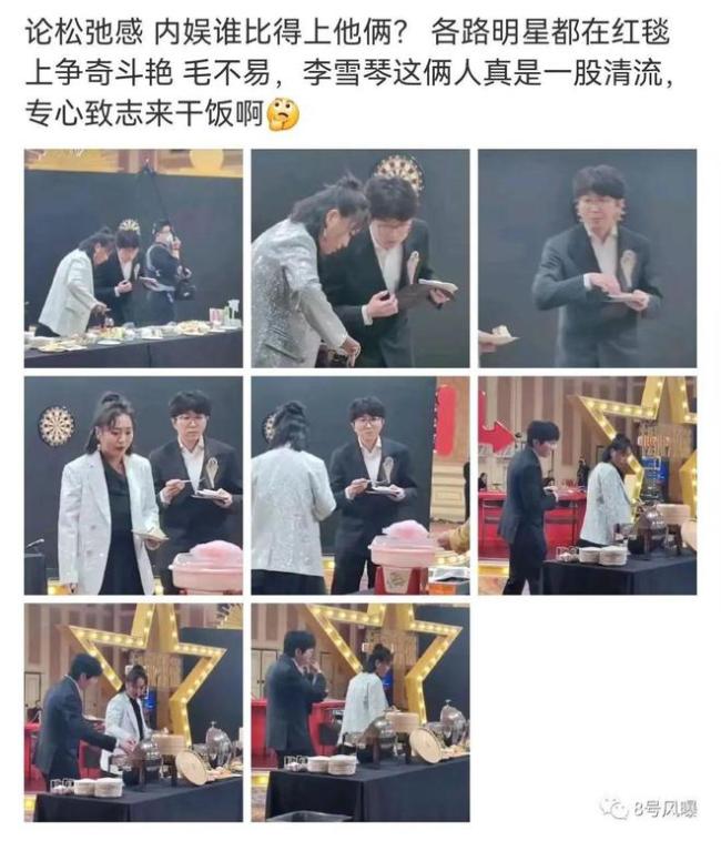 但现场出现两个极为松弛的艺人,那就是李雪琴和毛不易,二人专心干饭心无旁骛,仿佛不是来参加红毯的而是来搂席的。