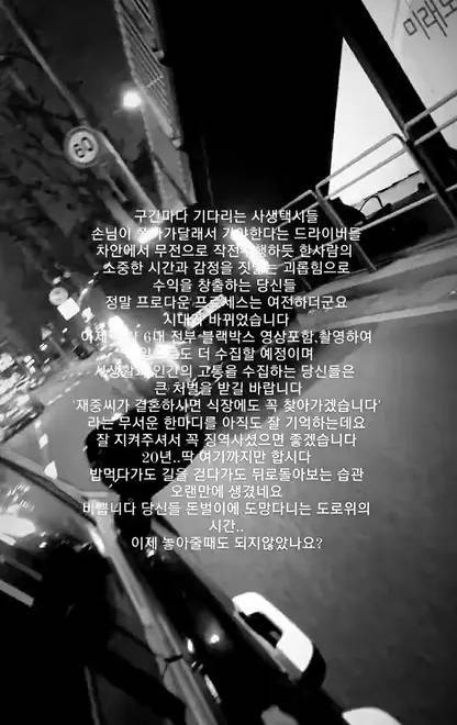 1月23日,金在中发文斥责私生,称多年来私生活受到侵扰,“昨天的6辆车全部被行车记录仪录下来了,以后也会继续收集,希望收集私生活和他人痛苦的你们能受到严厉的处罚。”甚至好言劝诫私生,“竟然说是我们的粉丝,希望我们的后辈们不要经历同样的事情,聚会场所的话没关系,粉丝们跟来我们也觉得没关系,但今天没有聚会,别跟来家里了。”