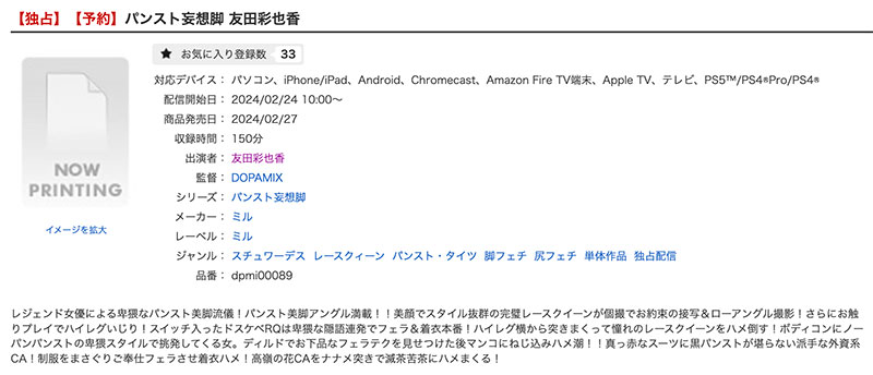 对的,没有片商接手,所以友田彩也香要重回企划女演员的位置了,证据就是这支在FANZA串流平台发售的作品「パンスト妄想脚」;往好的地方想是友田又可以像2010年那样拼命发片让大家看到各式各样还有高画质摄影的她,而友田本人也已经承诺会有很多作品和大家见面;我是蛮期待的,虽然现在没有AKB48可以模仿、她年纪和外型似乎也只能去演人妻系的企划,但我始终相信友田的斗志,她不会认输的,也希望Diaz Group可以好好帮她找工作〜