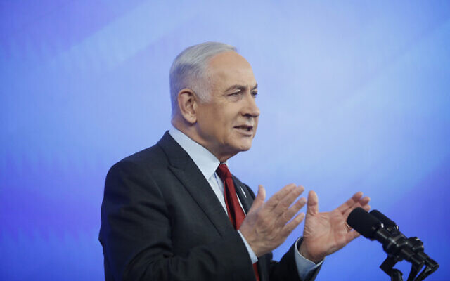 内塔尼亚胡27日发表电视讲话,图自《以色列时报》