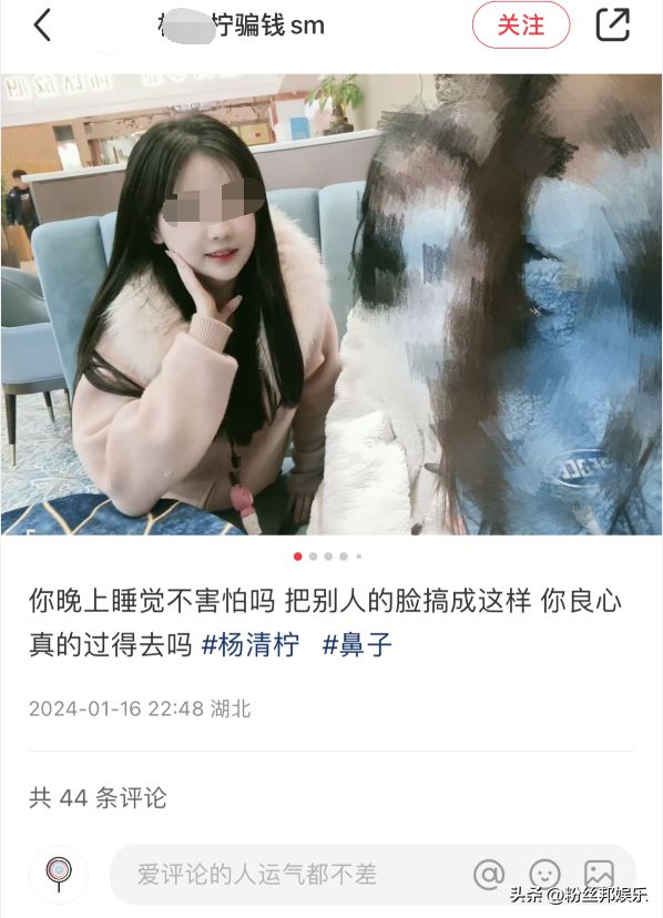 在今年1月,有网友对自己的整容效果不满意,在网络上爆料杨清柠代言推荐的整容机构做出来的效果和毁容没什么区别。