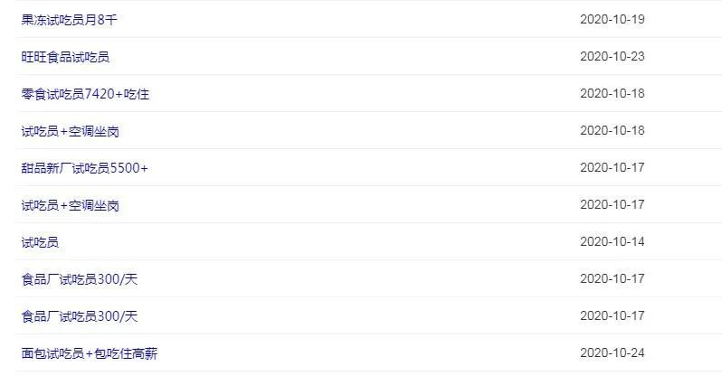 中新经纬记者注意到,类似的试吃还有很多,包括果冻试吃员、甜品试吃员、面包试吃员等等,月薪5000-8000元不等。