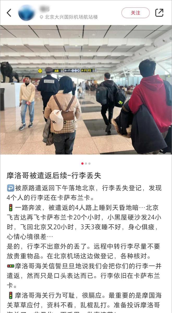 自2016年6月起,摩洛哥对中国实行了免签政策。近日就有楼主A在社交平台上发帖,入境摩洛哥时被遣返了!