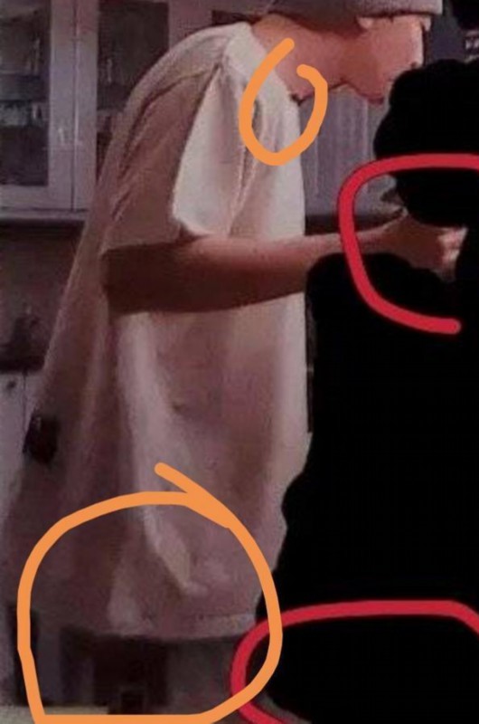 蛋糕图中帽子logo在前置摄像头里镜像了,但蛋糕上的iloveu没有镜像,亲吻照中女主脖子细的超乎想象,而且灿烈的腿部却在照片中国没有,灿烈身上的纹身也没有了。