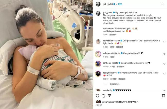 3月7日,《神奇女侠》的主演盖尔·加朵宣布她的第四个孩子出生,和前三个一样都是女孩,取名Ori,在希伯来语中意为“我的光”。她表示怀孕不易但大家挺过来了,女儿给生活带来了光明。