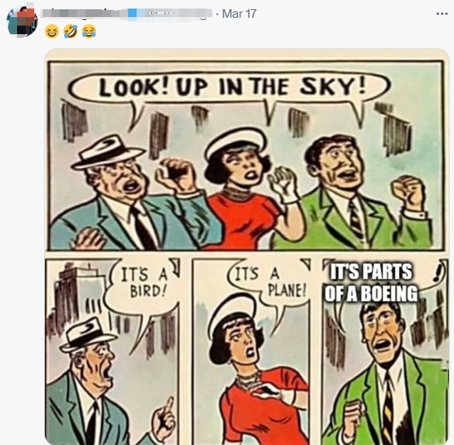 马斯克嘲讽波音飞机质量堪忧的梗图火了,点赞超37.5万