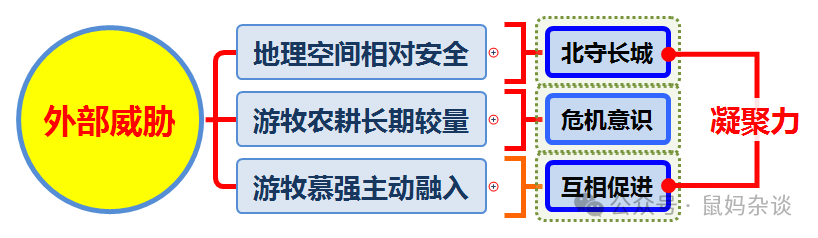 面对外部威胁,我们北守长城,形成凝聚力;