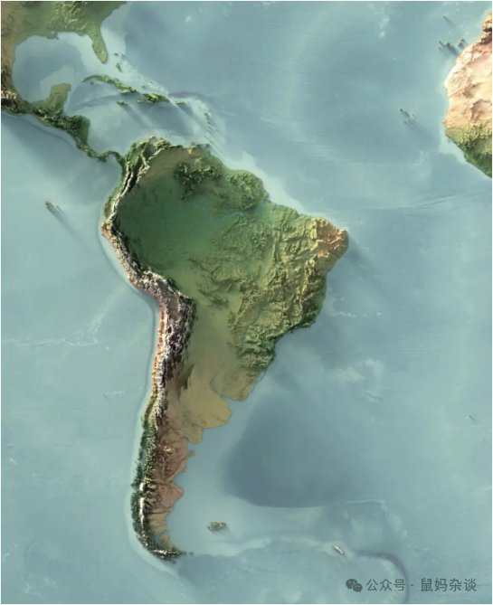 南美跟非洲类似,大部分地区属于热带,西面是安第斯山脉,是完整的防御体系,东南角巴西高原海拔只有600—800米,无法形成有效屏障,其他地方到处漏风,于是,欧洲殖民者从海上登陆后,阿根廷成了白银通道,巴西成了种植园,整个南美就成了欧洲人的后花园,现在成了美国人的后花园。