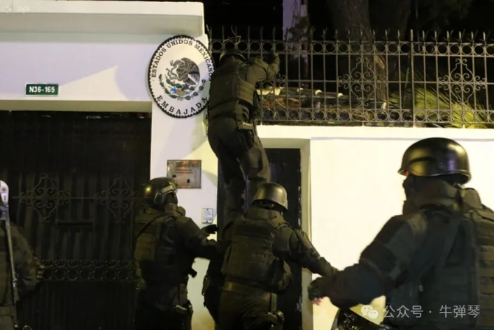 看视频,就在4月5日,一群全副武装的厄瓜多尔警察,翻墙闯入墨西哥驻厄瓜多尔大使馆,抓走了在那里寻求庇护的厄前副总统格拉斯。按照墨西哥的说法,可怜的墨西哥大使,还试图阻挡,但被厄瓜多尔警察一顿老拳伺候。