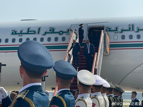 据@CGTN记者团 微博,7月17日上午,阿尔及利亚总统阿卜杜勒马吉德·特本抵达北京首都国际机场,正式开启为期五天的访华之旅。