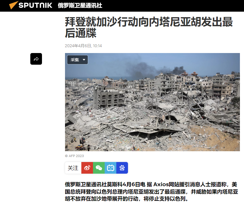 抢在伊朗复仇前,以色列自加沙撤军了,从开战前的动员50万人、二十多个旅,到五个旅,再到最后一个旅。4月7日,以色列军方突然传来消息,宣布从加沙南部撤军,几乎所有地面部队从加沙南部地区撤离,仅留下第933“纳哈尔”旅的部分部队,人数约为数千人,留下来保卫所谓的“纳扎里姆走廊”。巴以冲突持续了6个多月,死了3万多人,以色列在没有任何征兆的情况下,突然就这么撤军了?究竟是回防呢?还是蓄势待发?或是不忍心继续杀戮了?这与伊朗是否存在什么联系?以色列为什么突然要跑,谁都说不准,不过就目前情况来看,这与伊朗、美国以色列自己的内部都有着直接关系,而停火、休整、内外压力也都是其中的考量。以色列是一个国土面积很小的国家,根据1947年联合国关于巴勒斯坦分治决议的规定,以色列国土面积仅为15200平方千米,但是数次中东战争下来,目前实际控制面积约25000平方千米,海岸线长198千米。而就算按照这个实控面积来算,也就相当于中国中部地区两个地级市的大小。国土面积这么小,完全支撑不了以色列长期作战,简单梳理了一下数次中东战争的时间,第一次中东战争号称以色列的建国之战,从1948年5月打到1949年的7月,持续一年零两个月;第二次中东战争,1956年10月到1957年3月,持续5个月;第三次中东战争,1967年6月5日打到10日,仅持续了6天,史称“六日战争”;第四次中东战争,1973年10月6日打到24日,一共持续了18天;第五次中东战争,1982年6月一直打到9月,持续3个月。通过数次中东战争,我们就能发现规律,由以色列自己所主导的战争,没有超过3个月的,他只能打小而暴的战争,时间一长他就没法持久下去,而这次以色列军队已经在加沙地带整整打了6个月。在此背景下,以色列军队确实有停火休整,为下一阶段的战事做准备的可能性,当然,这绝非以色列自加沙撤军的主导因素。首先,这与近日伊朗的极限施压不无关系。以军炸了伊朗大使馆,这已经是对国际外交界底线的挑衅了,而伊朗也确实被逼到墙角了,如果不报复,那么什叶派之弧的大旗可就立不起来了,4月7日,哈梅内伊的军事顾问萨法维表示:“现在抵抗力量已经准备就绪,可以拭目以待会发生点什么”,这话说得很明显了,伊朗一定会报复!而除了伊朗的明确威胁外,国际舆论的压力尤其是来自美国的政治施压,也是以色列撤军的因素之一。按照内塔尼亚胡的原话:“全世界都在于以色列为敌,这是世界范围内无知和反犹太主义的结合”,而就在上周四,拜登在电话中向内塔尼亚胡发出最后通牒:“如果以色列不改变在加沙的路线,我们将无法支持你”!最后也是最为直接的一点,以色列国内存在的问题,对于内塔尼亚胡而言,“将人质送回以色列、挽回国内民意”,比其他目标更为紧迫。目前,以色列民间和政府内部,希望内塔尼亚胡“下台”的呼声越来越高,甚至数万名抗议者聚集在耶路撒冷,举行了大规模抗议示威活动。连前防长甘茨的民众支持率都已超过了内塔尼亚胡,如果现在进行选举,领导以色列政府的利库德集团不可能再次上位。同时,我们必须认清一点:“战争并未结束,加沙迎来的只是暂时平静”。内外交困之下,内塔尼亚胡不见得不会孤注一掷,开启一场旷日持久的战争,而只要战争还在继续,那推翻他的可能性就很小。当然,也不要把犹太资本的逼格看的太高,人家看重的是“利”,不会是某个政党,更不是某一个人,内塔尼亚胡下台了,以色列还是以色列。