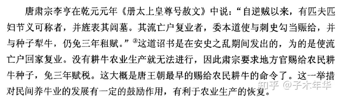 安史之乱以后,唐朝组织社会恢复生产,于是颁布政策,全面赐予耕牛。