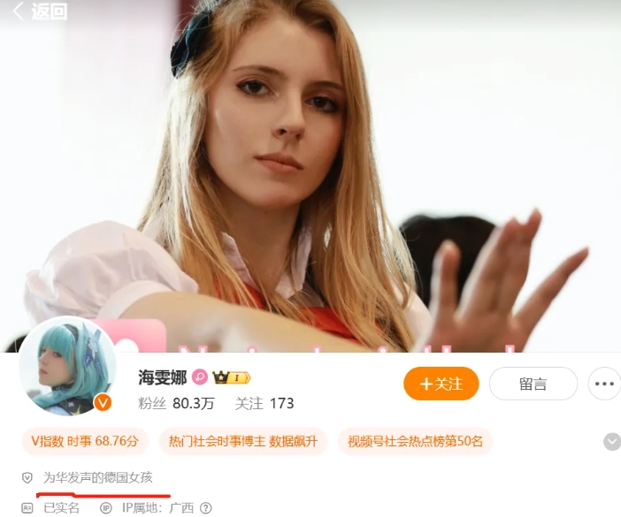 希望这个叫做海雯娜的德国人明白一点,中国人并不太需要一个德国人爱中国,反而希望德国人能够更爱自己的祖国一点。