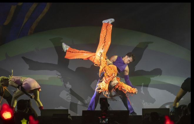 来到第三场Gigi依然状态大勇,不过表演后空翻动作时,可能用力太猛,最终Gigi被卫衣的帽子遮挡了视线,只见Gigi先露出既可爱又尴尬的笑容,之后秒速整理衣服继续又跳又唱。