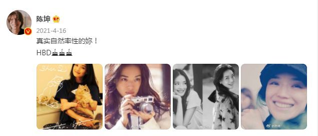 4月16日是舒淇48岁生日,当天零点零分的时候,陈坤也在个人的社交平台上晒出了舒淇的九宫格美照,并且送上了真挚的祝福:“生日快乐”,还特意配上了三个蛋糕的表情包,这也受到了网友们的广泛关注。