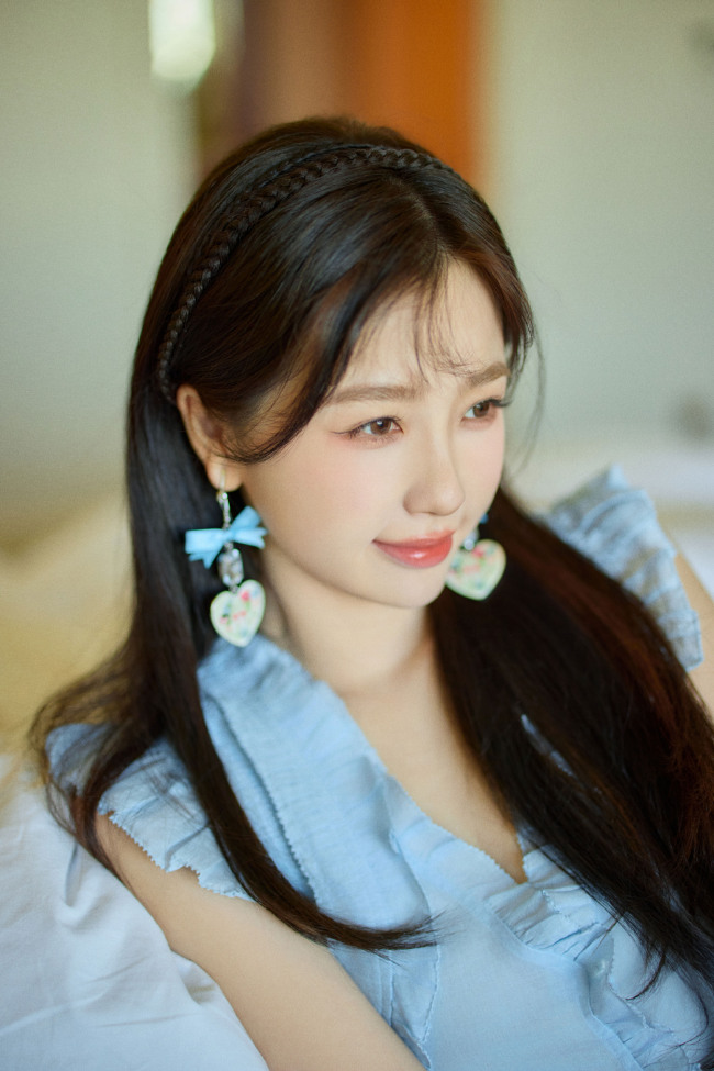 虞书欣穿蓝色连衣裙 元气少女清新甜美