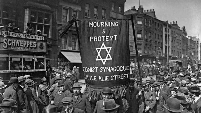 1919年,伦敦东区白教堂的犹太男子举行游行,抗议波兰屠杀犹太人