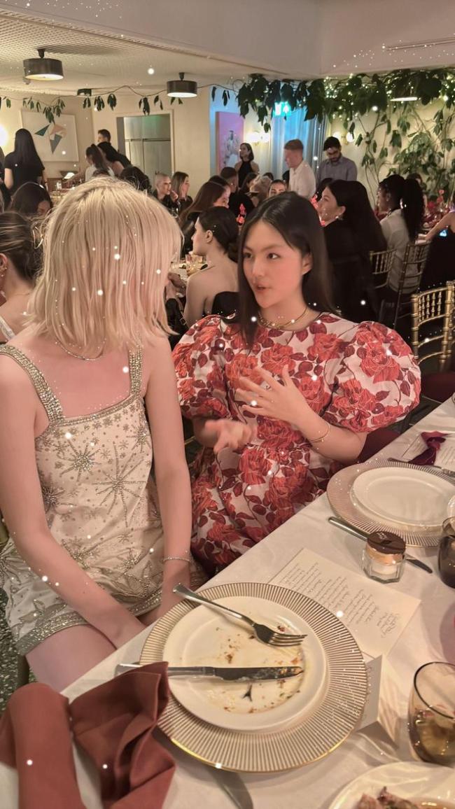 王诗龄与金发碧眼美女合影,气场实力胜出。