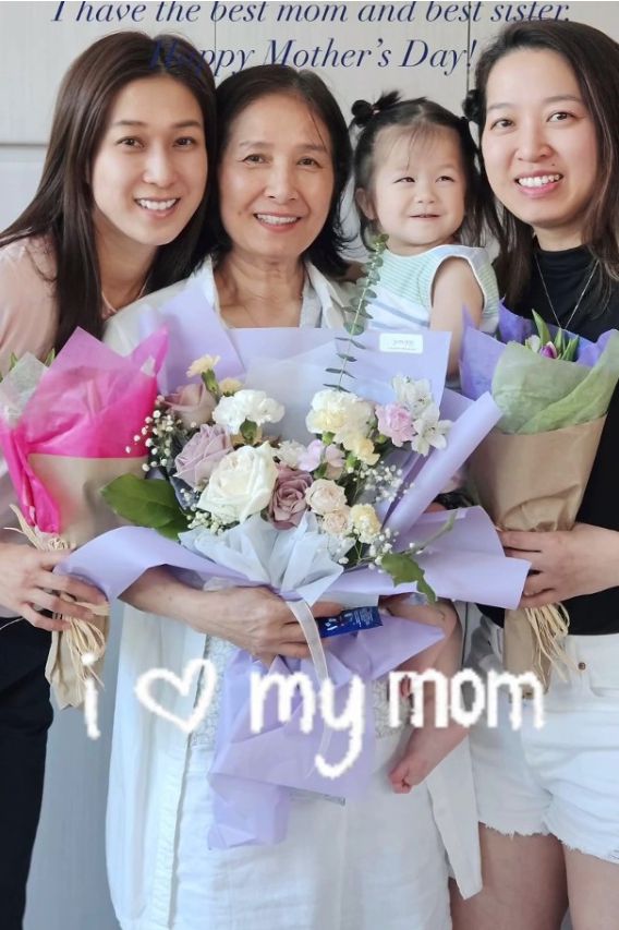 前TVB花旦钟嘉欣同脊医老公Jeremy先后生下3个儿女,近年已减产的她主力照顾家庭,昨日母亲节,她在社交网大晒子女送给她的母亲节礼物,此外还有与家姐及妈妈三代同堂的合照,相当温馨,而钟嘉欣的家姐很少公开露面,网民都表示她们两姊妹十足饼印一样!