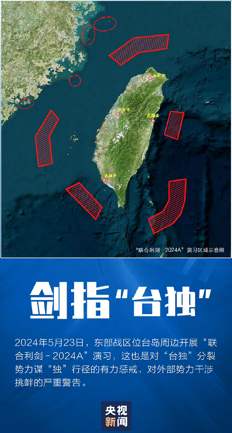 中国历史上只在台海地区举行过两次军事演习,一次是1996年,一次是2022年。2024年5月23日,中国举行了第三次台海军事演习。和之前两次不同的是这次中国军方举行的台海军演没有任何预告,甚至可以说是毫无预兆。23日早晨7点45分,解放军东部战区宣布举行台海军事演习,而军演从7点45分正式开始,一分钟的准备时间都没给外界留。之所以突然举行台海军事演习,东部战区也把原因说的很清楚,就是为了反台独,而且公告写的相当杀气腾腾。而突然反台独的原因,是因为5月20日赖清德在发表就职演讲中大谈特谈“台独”言论,反复鼓吹“两国论”,发言离谱至极。赖清德的言论充满令人瞠目结舌的错误史观和刻意扭曲的法理认识,从头至尾表现出“务实台独工作者”的立场。其在所谓“国家”认同上大做文章,实质是强化“台独”分离主义的精神动员。