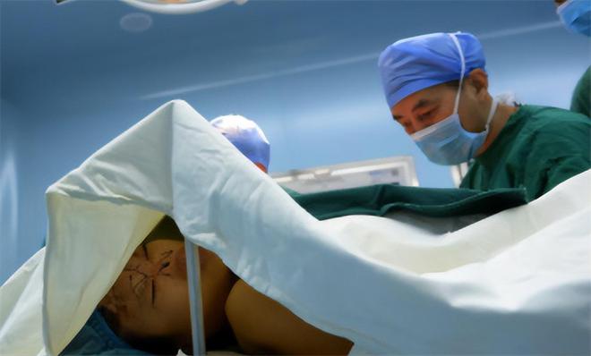 医生将其左臂扩张部位注射了麻药,将其中的积水抽出,并沿着画好的鼻形图案将皮肤割开,改变血液的流动方向,最后进行缝合。
