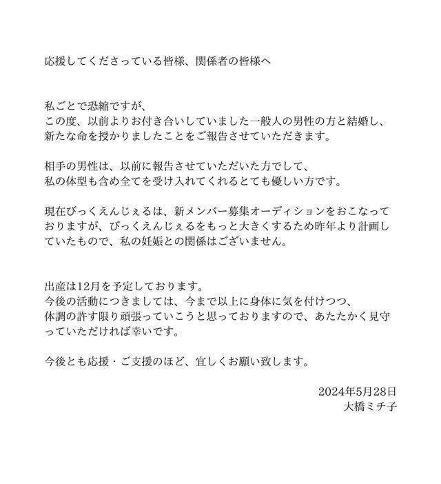 94KG日本女偶像大桥道子宣布闪电结婚 并已经怀孕