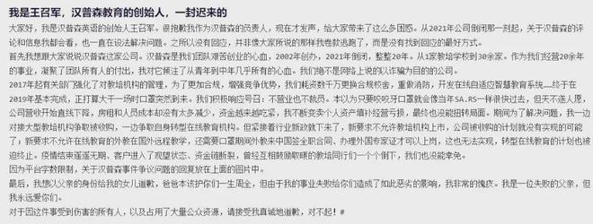 而王怡然的爸爸也曾发文向女儿道歉,并表示会想办法弥补受害者的损失:爸爸本该护你们一生周全,但由于我的事业失败给你们造成了如此恶劣的影响,我非常的愧疚,我是一位失败的父亲,但我永远爱你们。