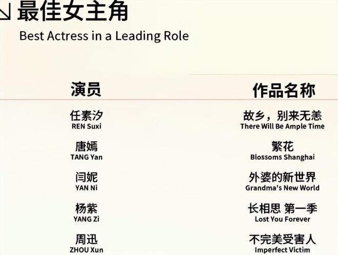 总的来说,这份提名名单虽然汇集了众多实力派女演员,但其中的争议和内幕也不容忽视。希望未来的评选能够更加公正、透明,让真正有实力的演员得到应有的认可。