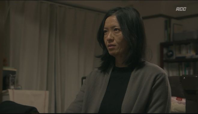 出演了主人公的妈妈,因为丈夫背负杀人的罪名,于是她必须带着孩子过着悲惨的生活,也毫无顾虑的呈现出苍老的妆容。