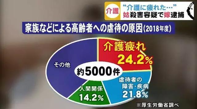 根据日本厚生劳动省的统计,2018年日本发生老人虐待事件高达17078起。在其中已查明原因的约5000起虐待老人案件中,占比最大的就是疲于照顾老人,达到了24.2%。