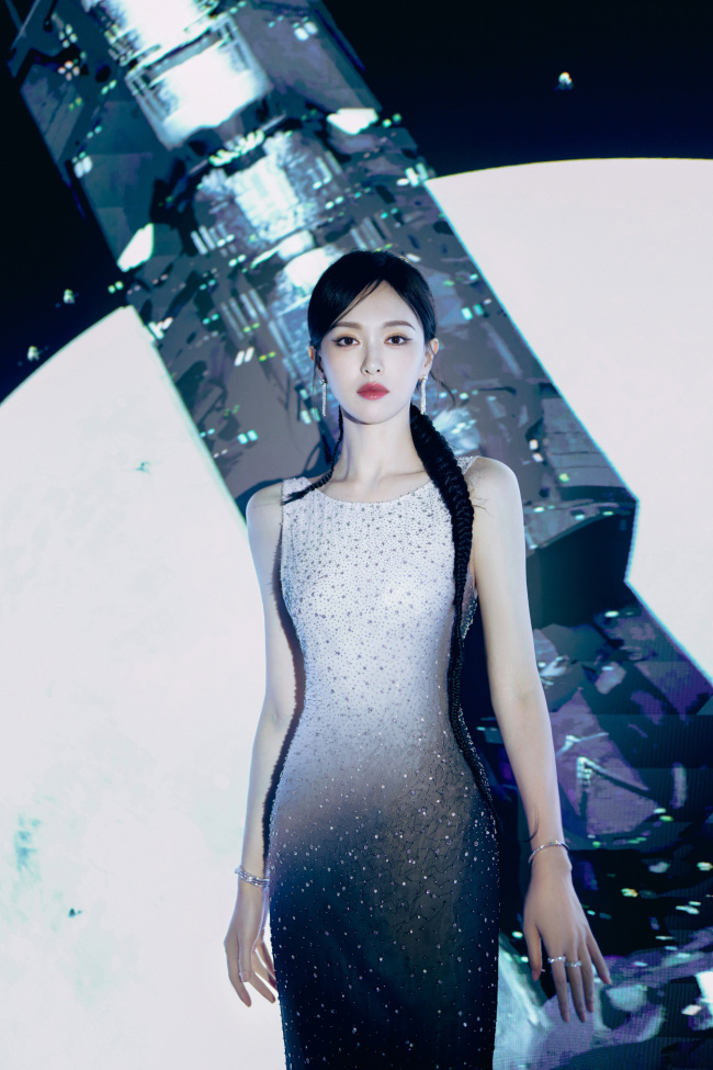 唐嫣身穿闪钻露背裙 科技十足化身银河女神