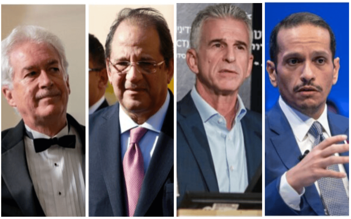 美国中央情报局局长伯恩斯、埃及情报局局长卡迈勒、摩萨德负责人大卫·巴尼亚和卡塔尔首相穆罕默德。《以色列时报》