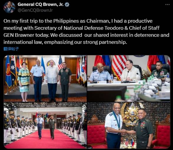 美国参联会主席布朗与菲律宾武装部队总参谋长布劳纳 图自社交媒体