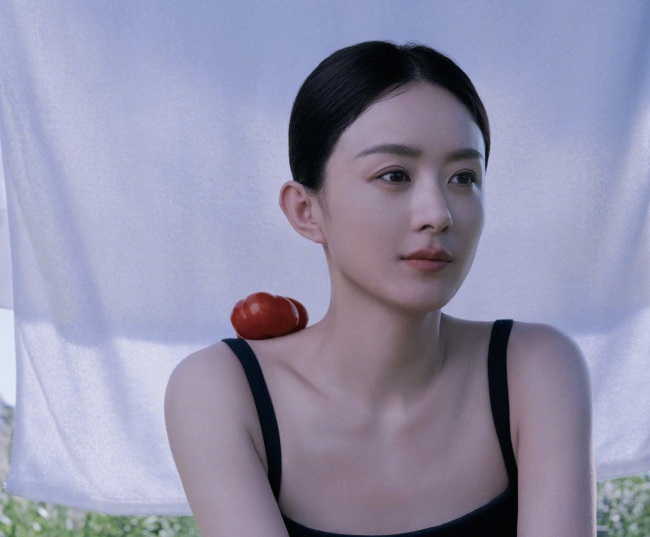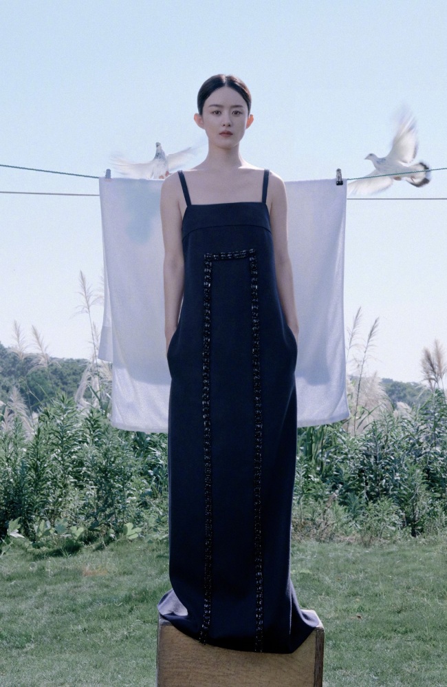 赵丽颖黑色吊带冷艳高贵似天鹅