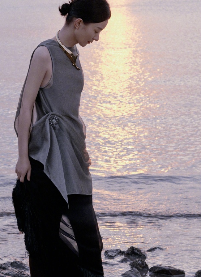 近日,赵丽颖发布一组时尚写真照。赵丽颖身穿黑色吊带拍摄时尚杂志。秀出优越的肩颈线条,低腰盘发展现完美骨相,冷艳高贵宛如湖边的天鹅,唯美迷人!