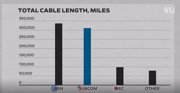 几十年来,美国SubCom公司、日本NEC公司和法国阿尔卡特海底网络公司(Alcatel Submarine Networks)主导着海底光缆的建设。美国电信市场调研公司TeleGeography数据显示,之前85%的海底光缆都由欧洲、美国和日本的公司铺设,直到2008年中国公司加入了竞争。