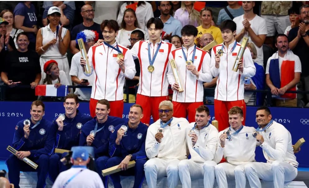 8月5日凌晨,中国游泳队在巴黎奥运会男子4×100米混合泳接力赛中,击败美国、法国等欧美强队,一举夺取金牌。