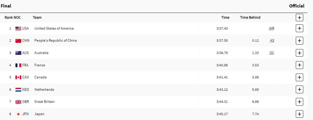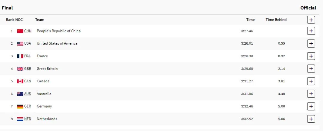 所以,看看进入男子4x100混合接力决赛的队伍,除了中国以外,清一色都是美/西方发达国家:美国、加拿大、英国、法国、荷兰、澳大利亚、德国。除了中国以外,简单概括,就是“四眼”国家(美、英、加、澳)+德法荷。