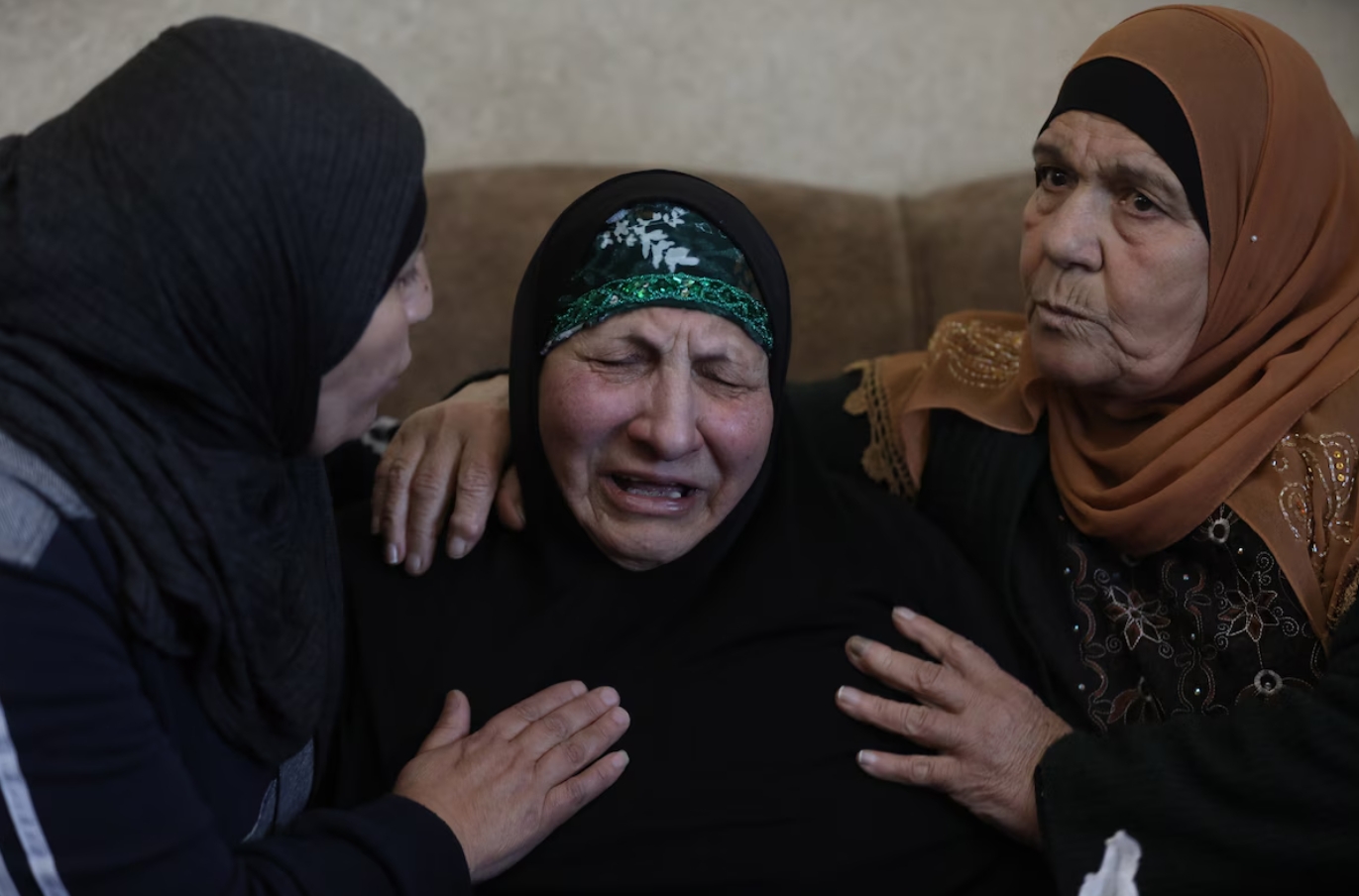 2022年1月13日,奥马尔·阿萨德的遗孀在葬礼上痛哭。《华盛顿邮报》