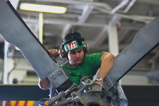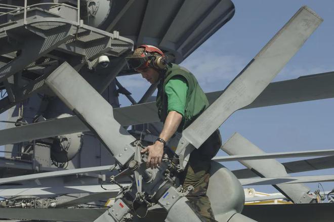 相对而言,海鹰结构较黑鹰来得稍稍更复杂一些。因此舰载机的维护保养工作量比陆基飞机大很多,特别是舰载直升机,旋翼折叠机构复杂,再来看看海鹰直升机的旋翼折叠机构和舰载机维护保养。