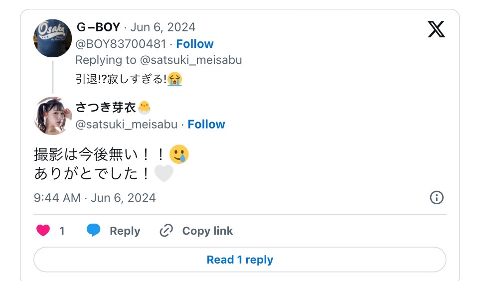 这次是玩真的?!さつき芽衣(沙月芽衣)引退!