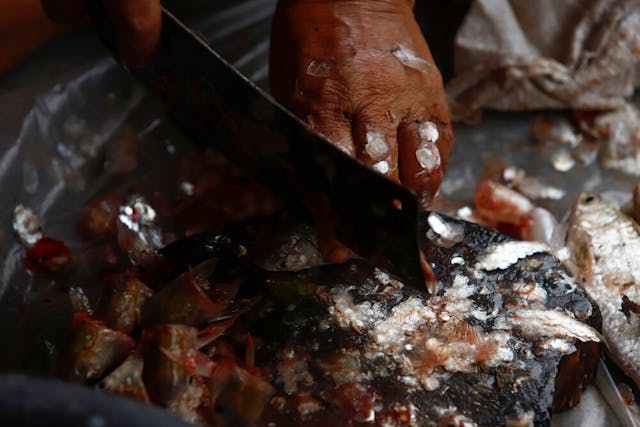 鱼贩触摸鱼类,用的是温柔不伤鱼体的方式。指尖测量油度,抓取触碰用以测试鱼僵直与鲜度。鱼贩留起指甲,才不是用来摸鱼的。