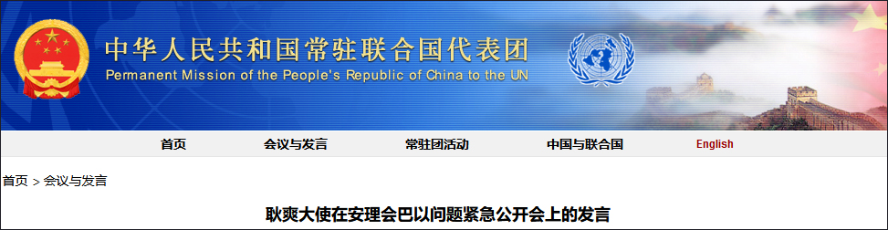 据中国常驻联合国代表团网站9月4日消息,耿爽大使在安理会巴以问题紧急公开会上发言。