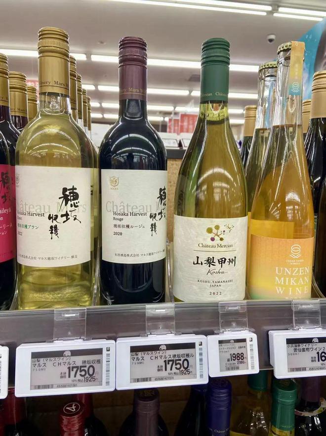最便宜的三得利红酒只要33元,比较有名的山梨甲州白葡萄酒折合106元。
