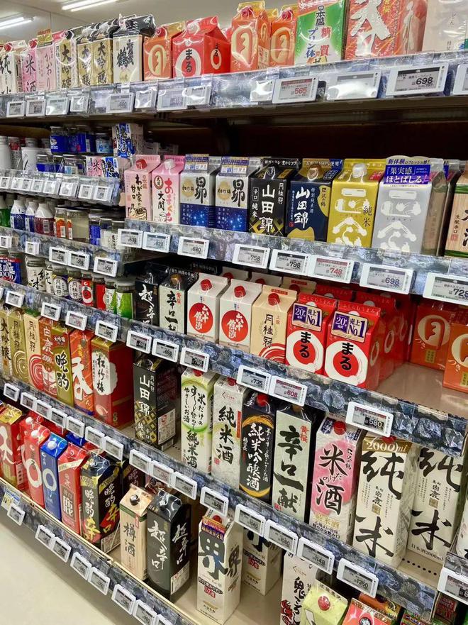 像2000毫升的纸盒黑松白鹿纯米酒72元,900毫升的月桂冠山田锦42元,200毫升日本盛6元,主打一个经济实惠。